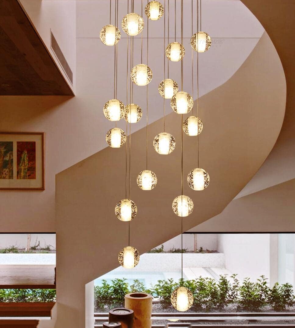 50 from 4.5 out of 5 stars 46. Siljoy modern round crystal chandelier raindrop clear k9 crystal large chandelier pendant light fixture for high ceiling stairs living room d 31.5 x h 79. Long crystal chandeliers were created especially for staircase, stairwell. Modern design chandeliers look elegant and luxurious, s ome models can be more than 2 m in length. This indoor chandelier is ideal for entryways and dining rooms, including those with high ceilings. Industrial chandeliers combine a modern look with an industrial design. It'll go great with exposed bricks and high ceilings. Each cable strand is wrapped individually with number labeled, what you need to do is to simply hang the crystal balls to the cable string and then.